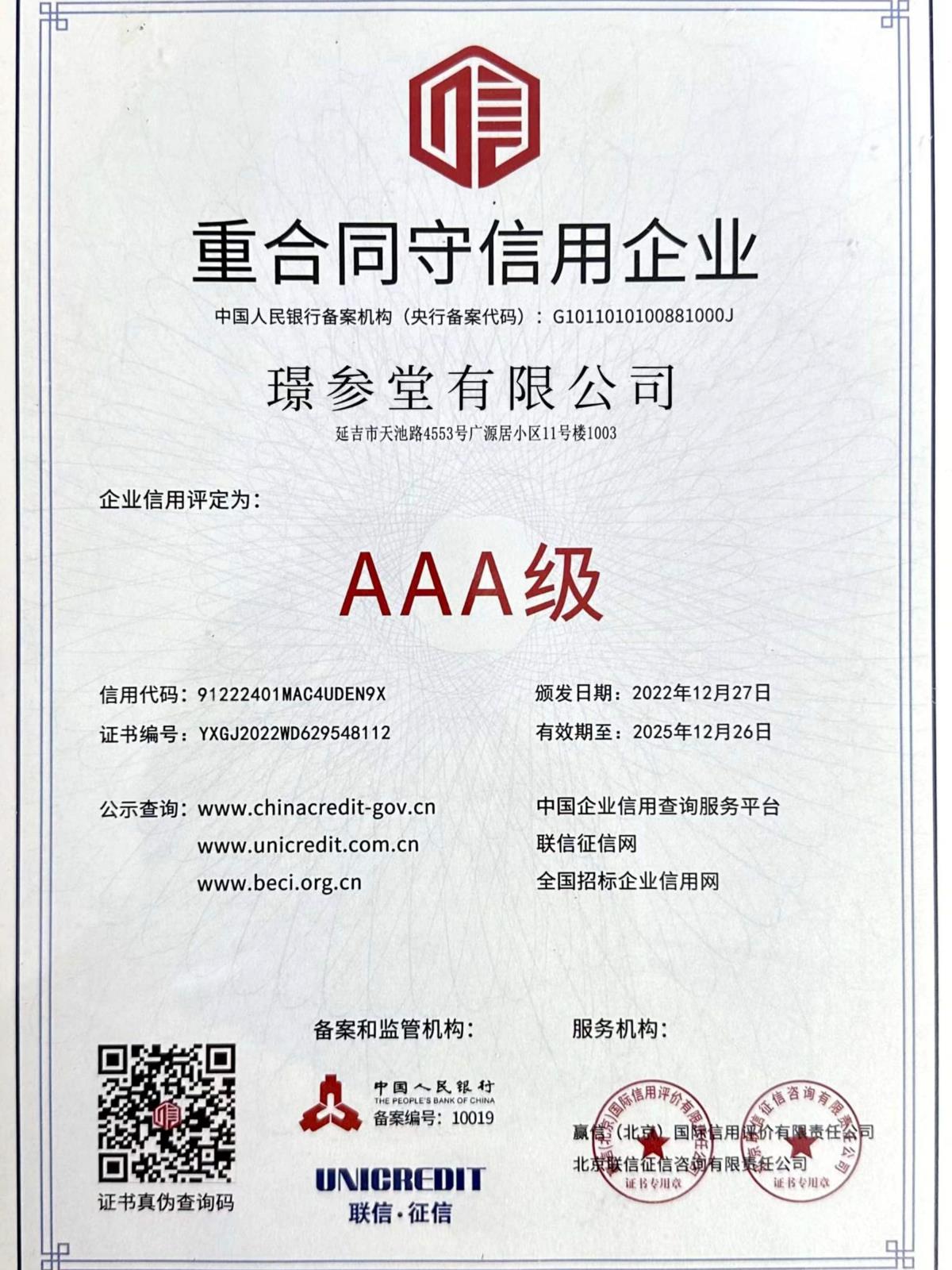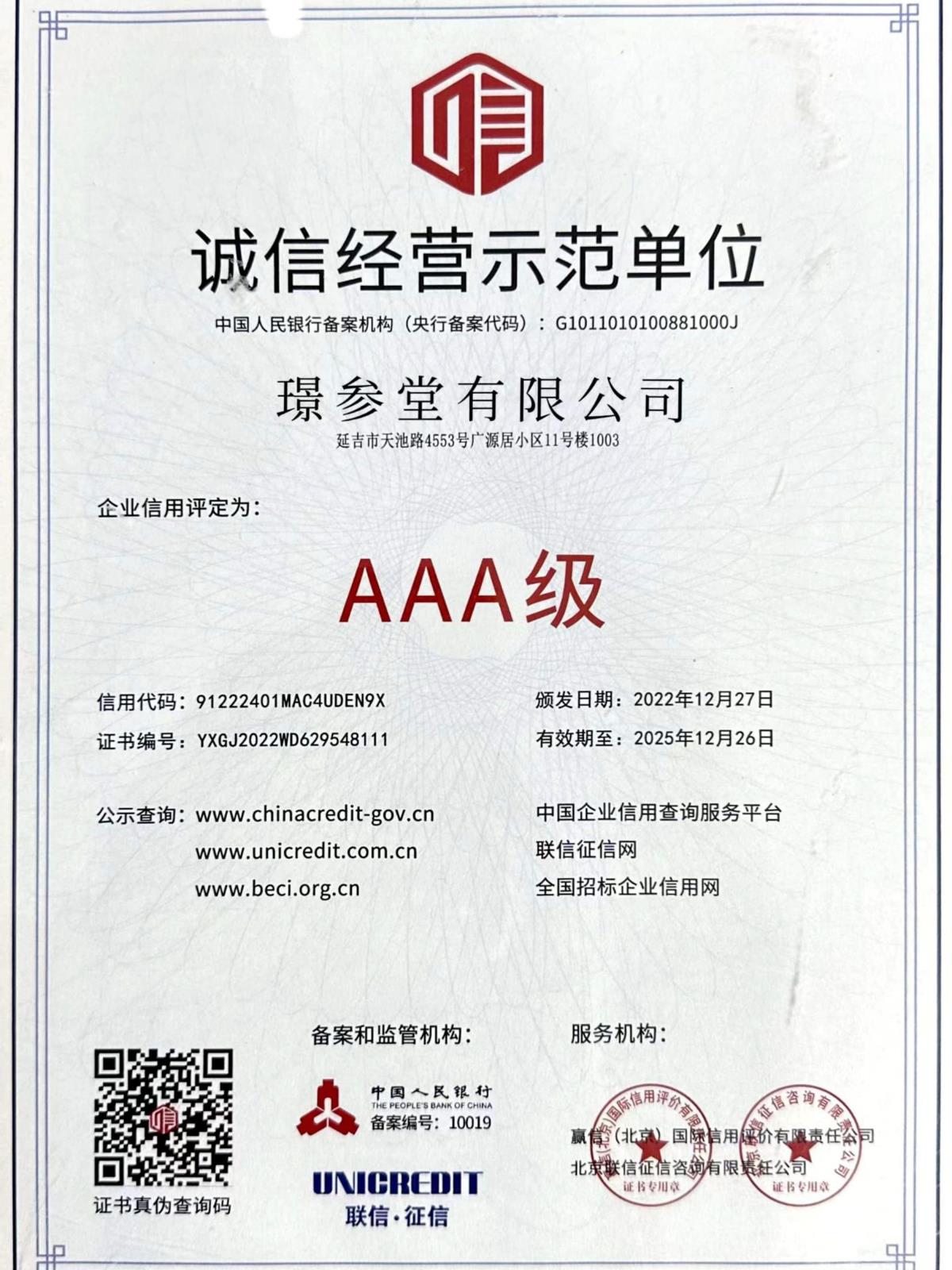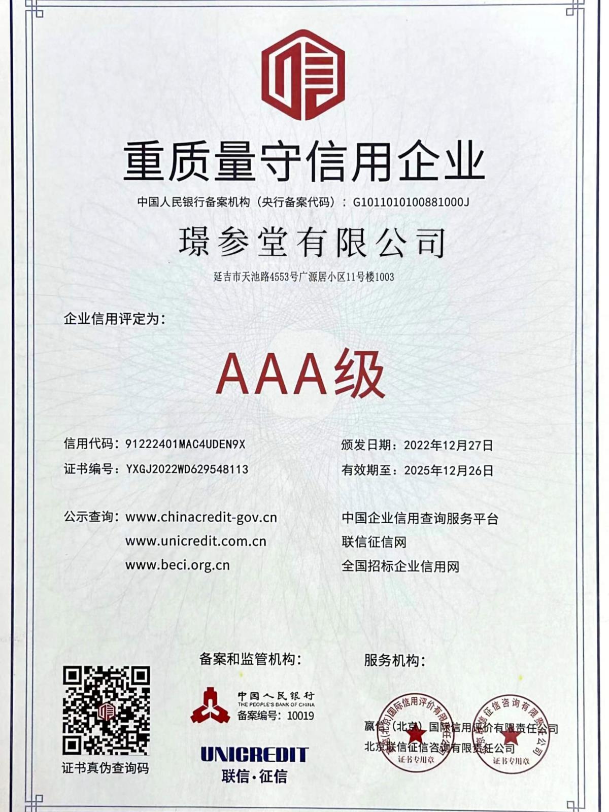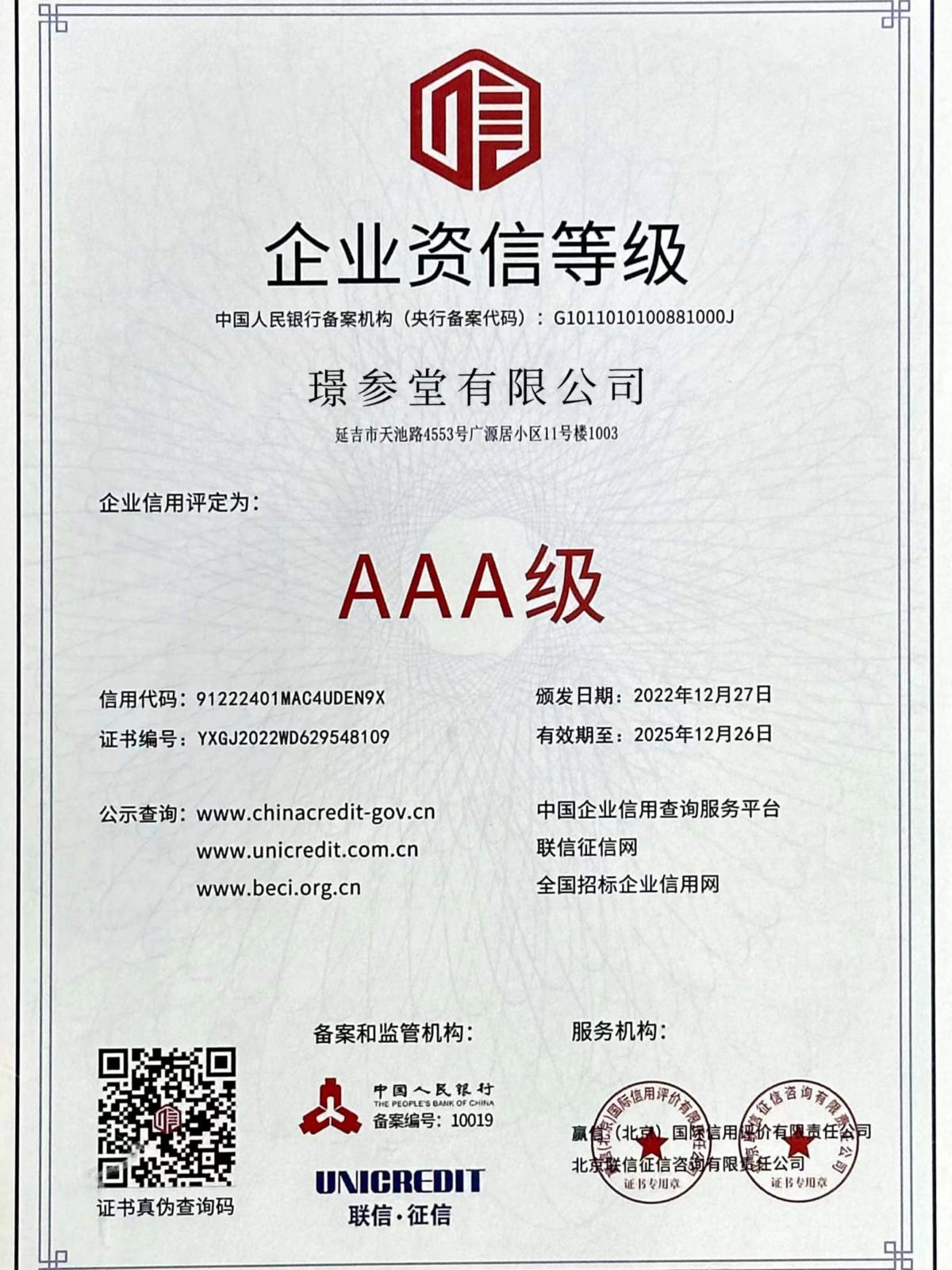 企业资信等级(AAA)(2022.12.27-2025.12.26)